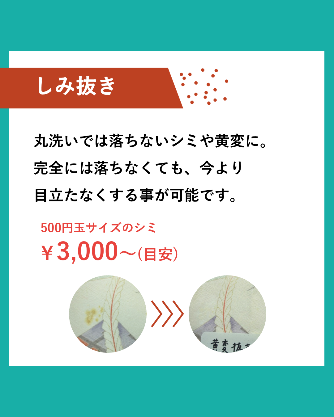 油性の汚れや、シーズンの終わり、またしばらく着ない場合におすすめです。