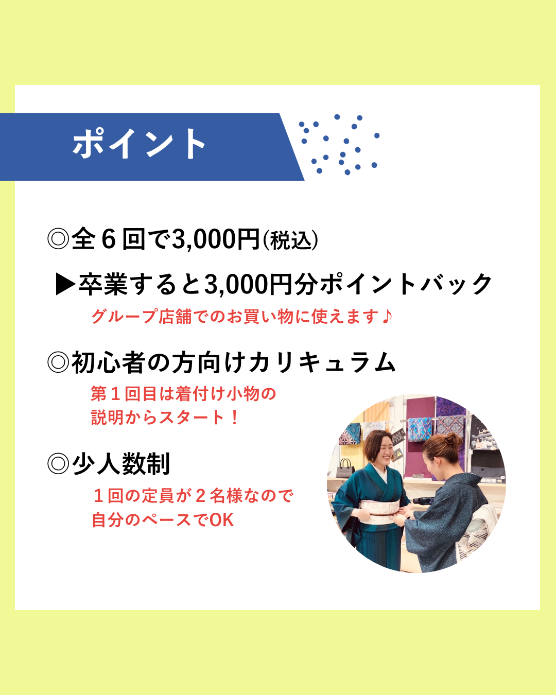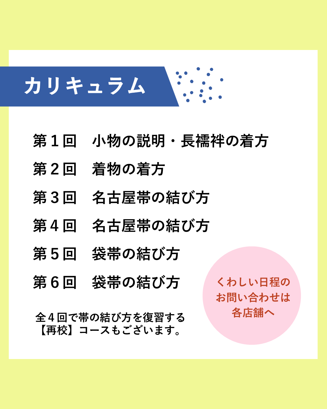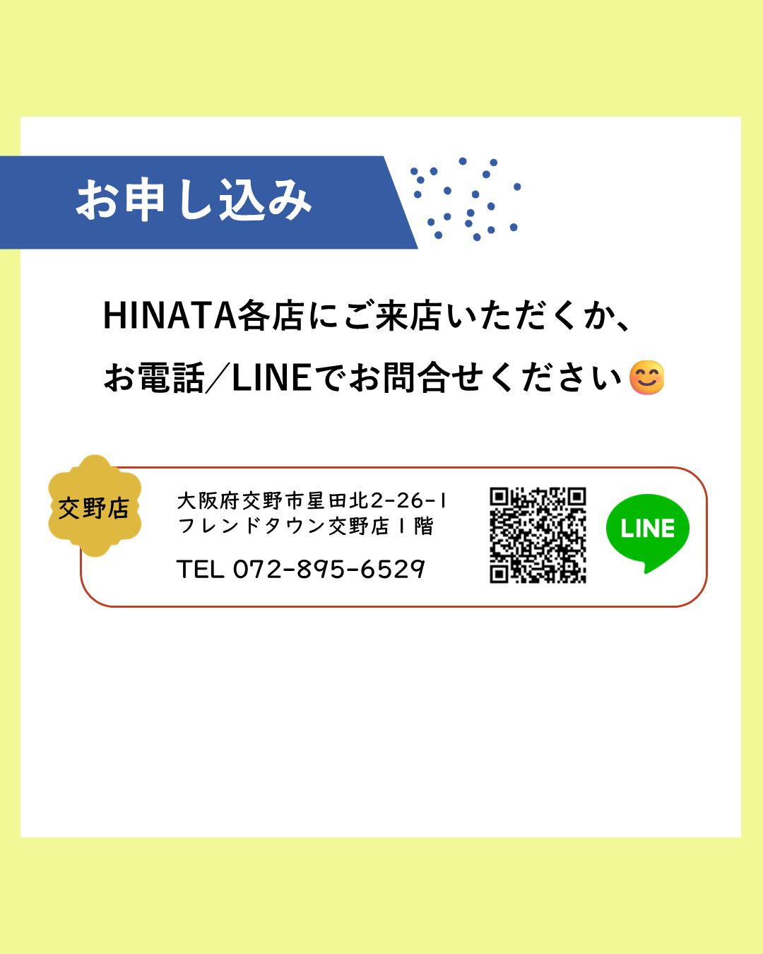 着付教室 2025.12.11 着物をもっと身近に、もっと自分らしく楽しんでみませんか。HINATAの着付教室は、初心者の方でも安心して通える少人数制レッスン。プロの講師が丁寧に寄り添い、日常の着物から特別な日の装いまで、美しく着られる技術をしっかり身につけられます。手ぶらで参加できるコースもご用意し、きものデビューを全力でサポートします。 日程や内容の詳細情報は、 お気軽にぜひお問合せください 交野店へLINE問合せ HOME